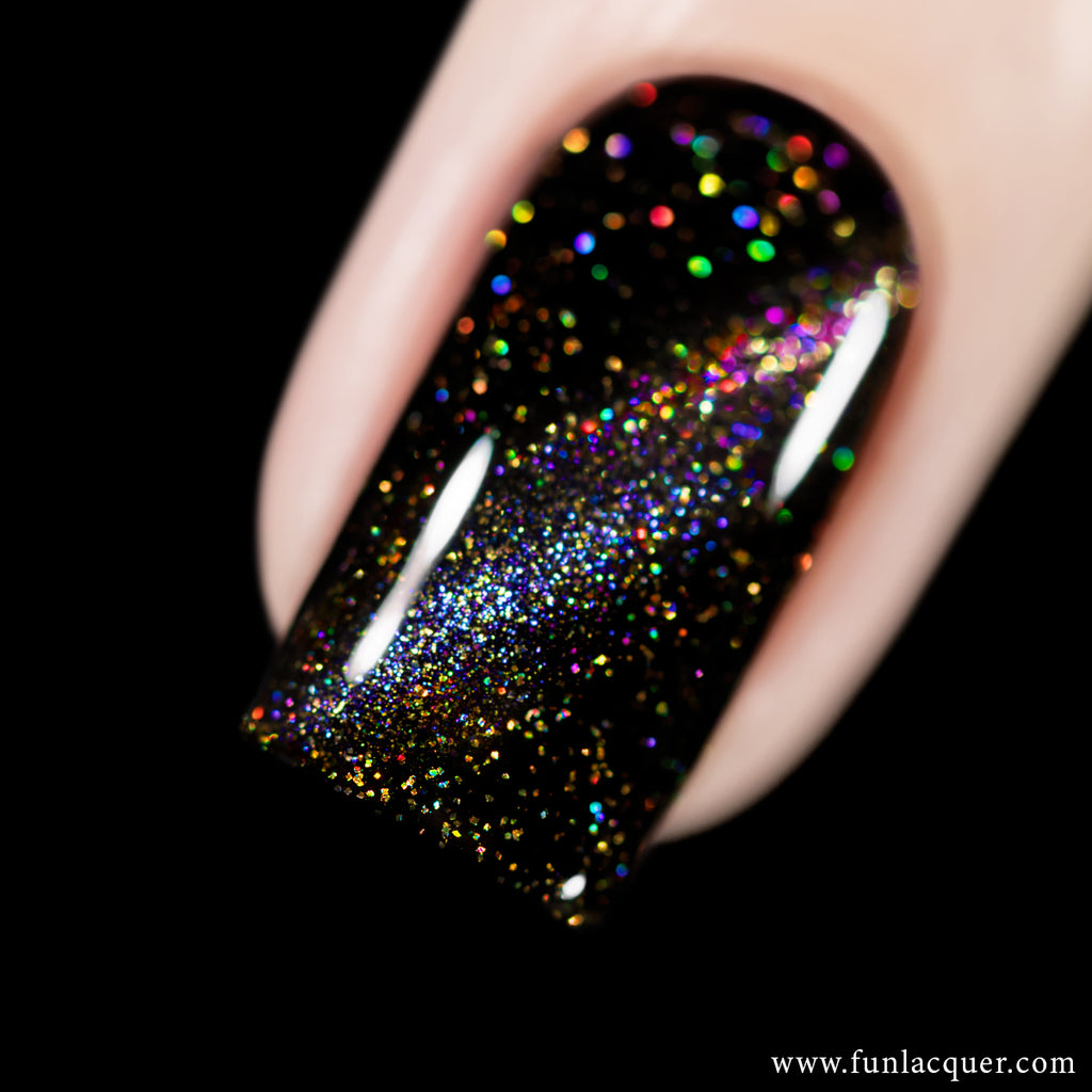 Fancy Twilight captures the captivating charm of holiday evenings, where city lights shimmer and the sky glows in rich twilight tones. This multichrome magnetic polish shifts beautifully from deep violet to sapphire blue with glints of reflective gold, creating a luxurious jewel-tone effect that feels both festive and elegantly dramatic. Holographic particles scatter across the surface, producing bursts of rainbow sparkle that enhance the multidimensional finish.